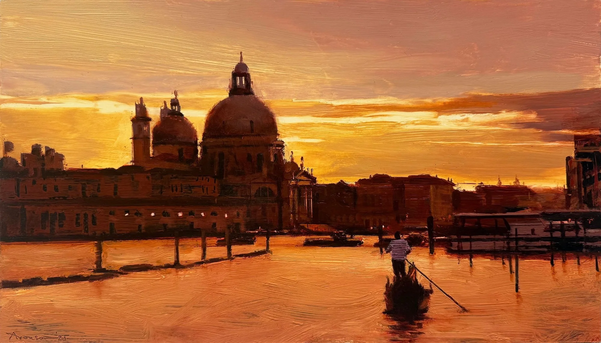 Often described as a painter of the suspended moment, Aronson isolates quiet intervals within the city’s constant flux. His paintings slow the pulse of the metropolis, offering moments of reflection and stillness amid its relentless movement. Whether depicting New York, Boston, San Francisco, or cities of Europe, Aronson transforms the familiar into images of rare clarity and enduring lyricism.