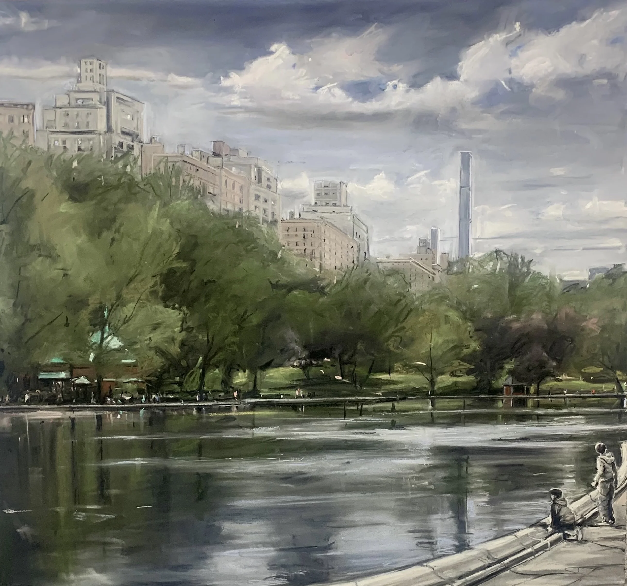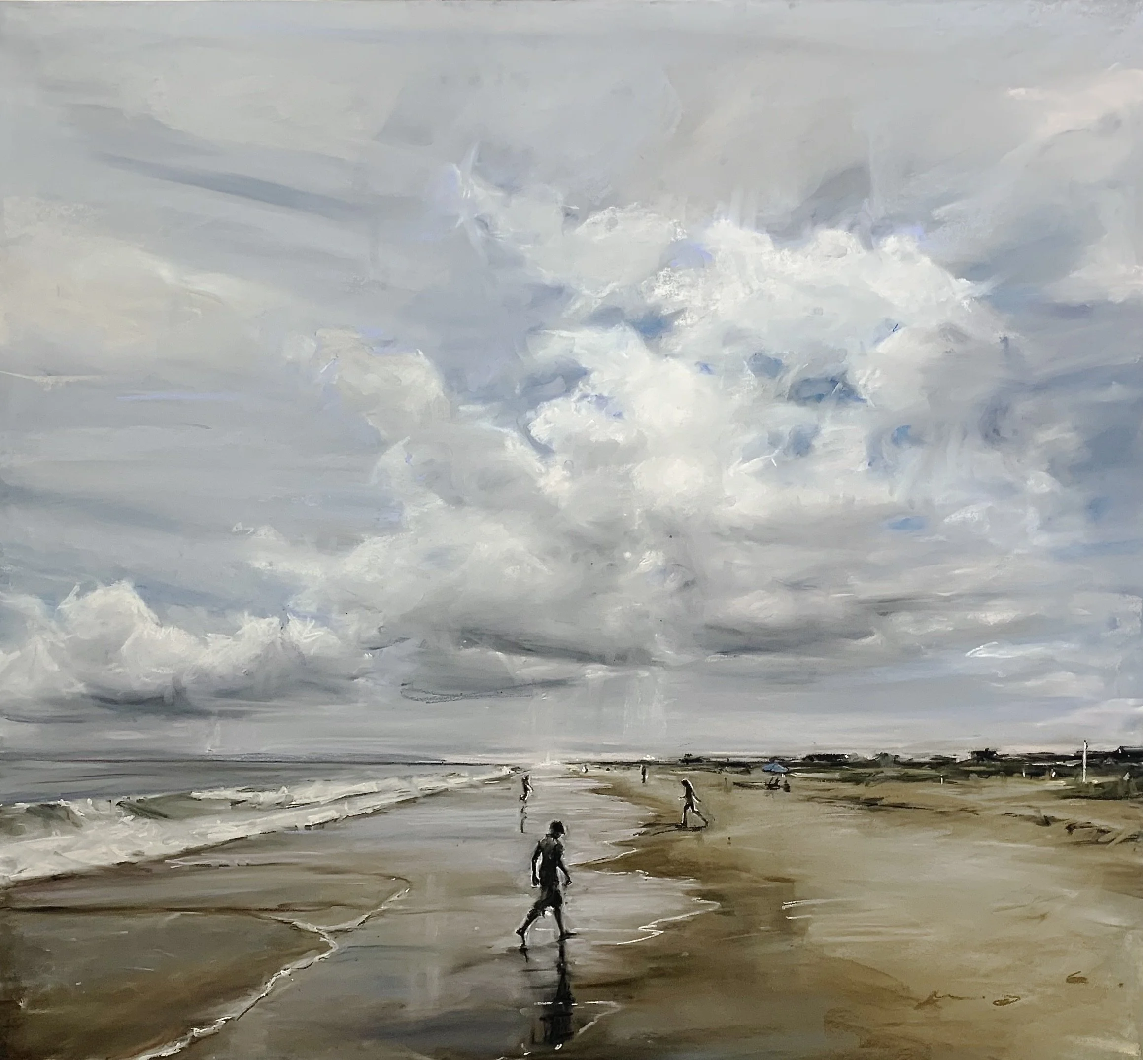 Susan Grossman approaches landscape through a minimalistic palette of black, white, and gray with the occasional appearance of a primary color. Her process begins with reference photographs of subjects and locations. After a return to the studio, painting begins and draws directly from the source materials before she allows the artistic process to take over and create a unique narrative world. Elements of the original location are repositioned, created from nothing, or eliminated to achieve the final product. The physicality of the technique saturates the final product with a sense of action that feels as though one is witnessing something completed only moments before.