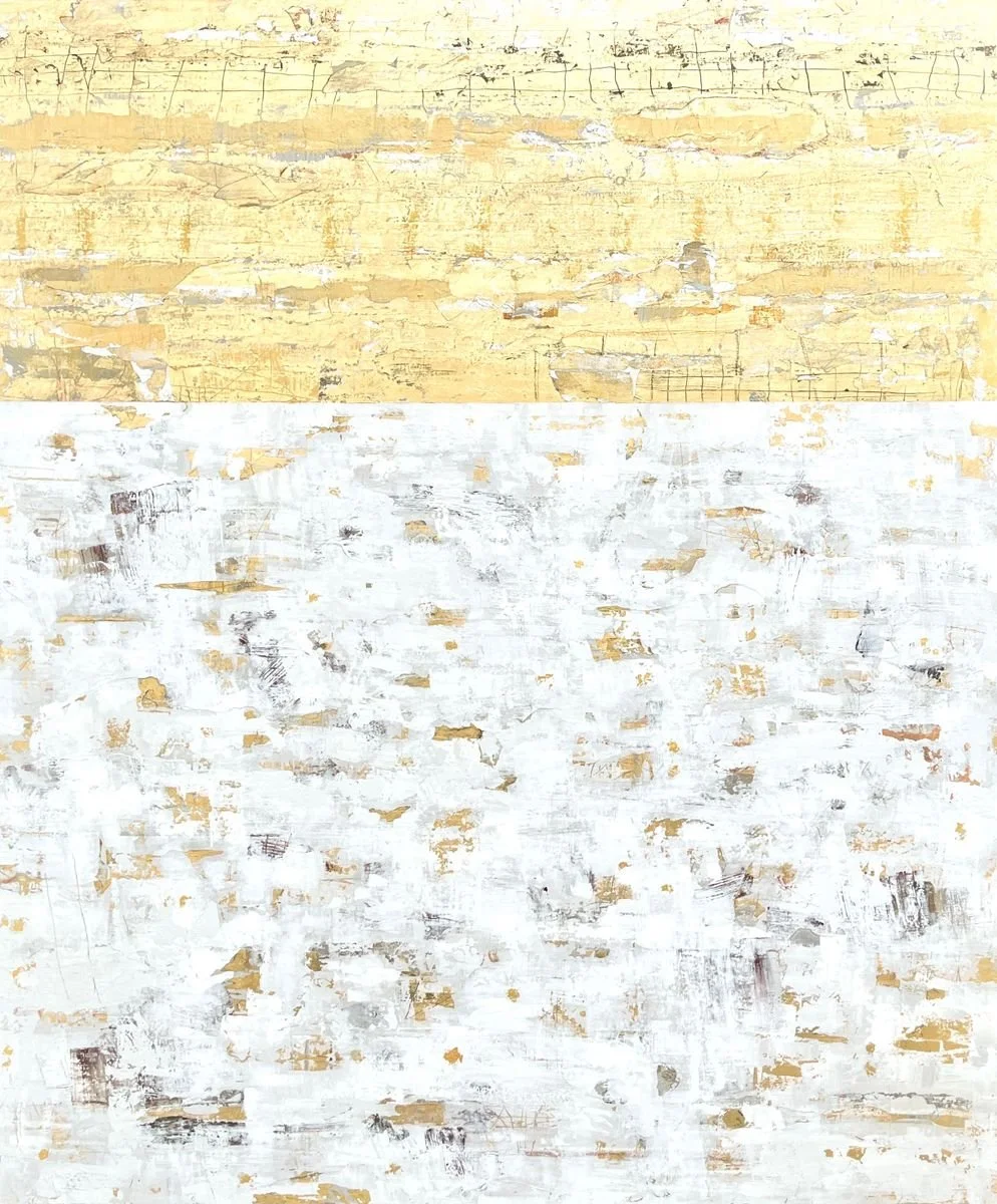 Takefumi Hori was born in 1978 in Tokyo, Japan where he studied Japanese calligraphy. After moving to New York in 2004, he started working in acrylic and later gold leaf. With an eye towards merging Eastern art traditions with Western, his compositions draw from his experience with Japanese calligraphy: by placing the center of visual weight at lower left, he then creates by moving towards the upper right of each canvas.